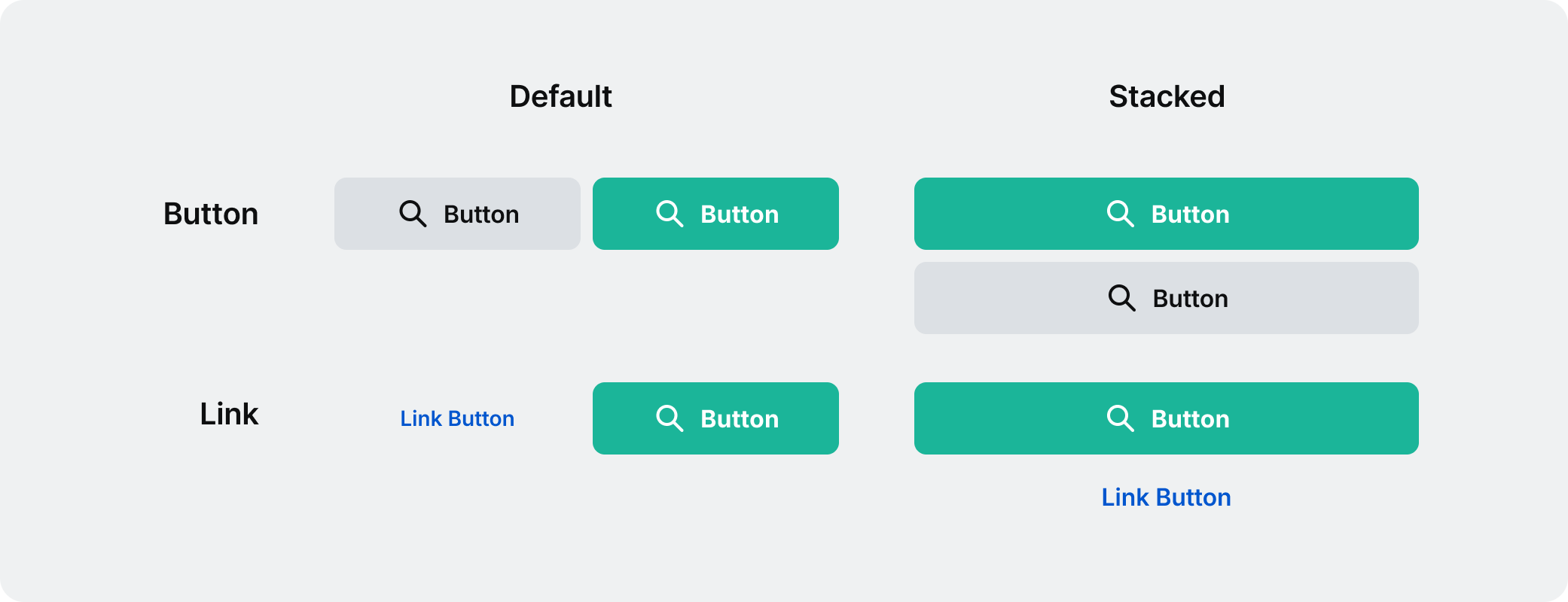 There are some instances where we use the stacked version of our button in tablet and desktop breakpoints. In this case, please use discretion when setting your min and max widths so that it utilizes the space efficiently with best UI practices in mind. Below are a couple examples of how we’ve used the stacked button across different breakpoints.