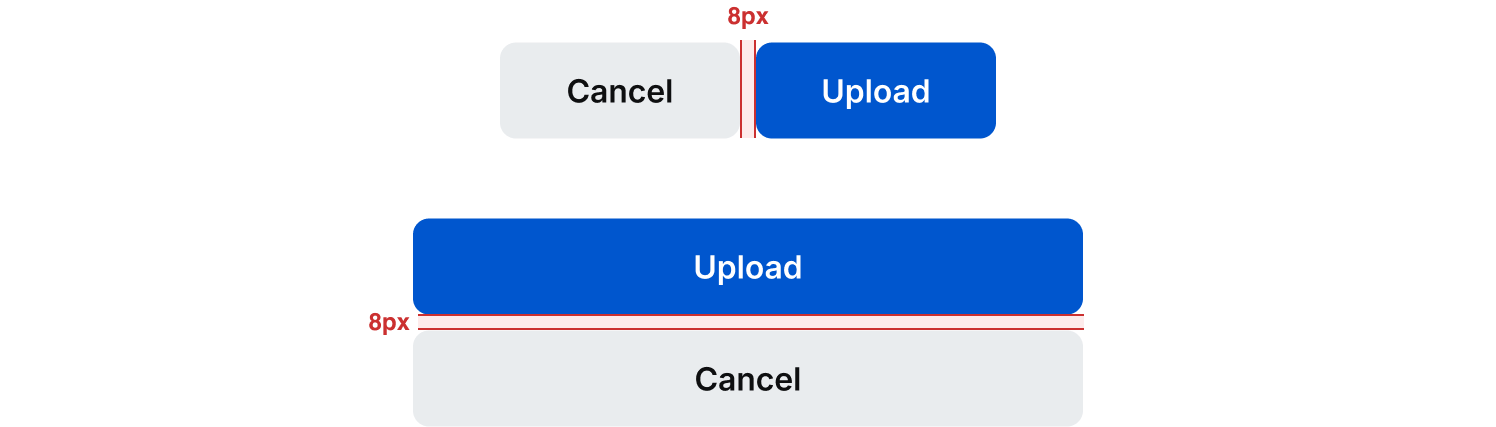 Button priority should match the alignment of the paired text. For example, if the text is left-aligned, buttons should be arranged where the more important button is on the left. When the text is right or center-aligned then the most important button will be on the furthermost right.