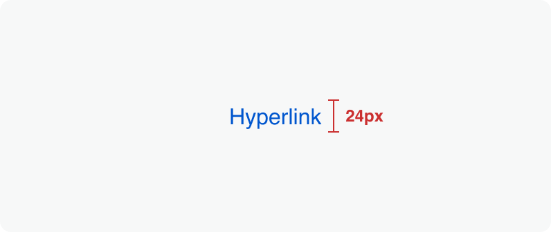 The primary hyperlink is the default variant and is blue. This should be used to call attention to the link and for when the blue color won’t feel too overwhelming in the experience.