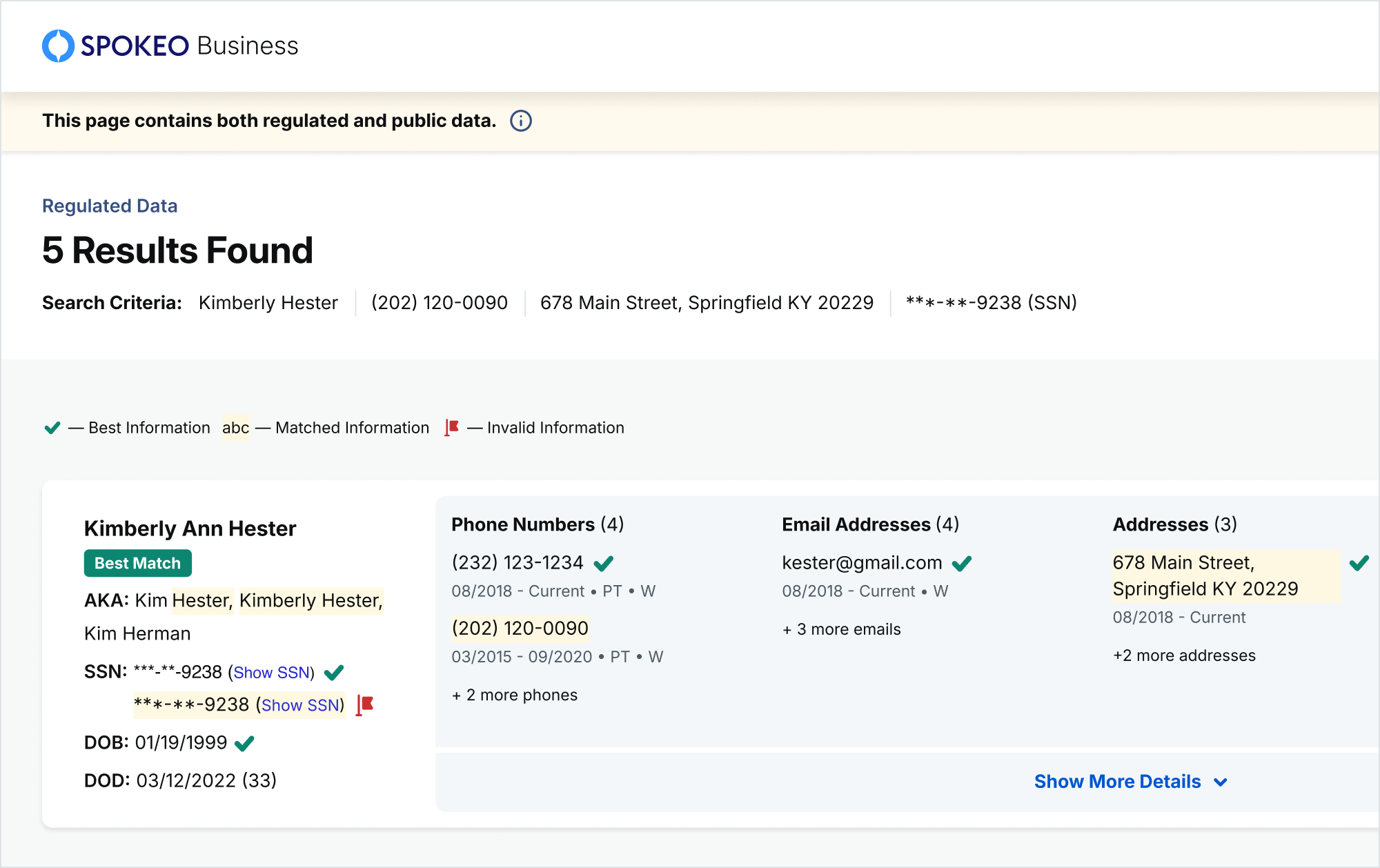 Spokeo Business - Search Results List