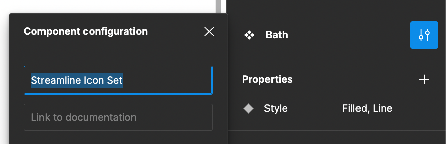 When using the Streamline icon set, add the icon set name to the Component Configuration description and place the icon under the “From Streamline” category on the artboard.