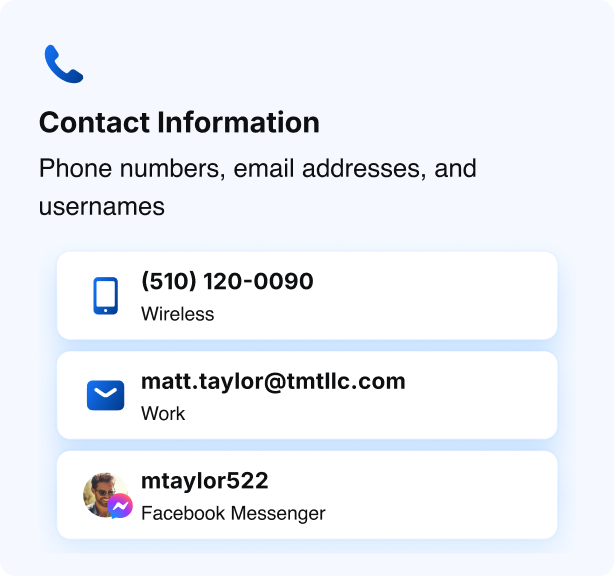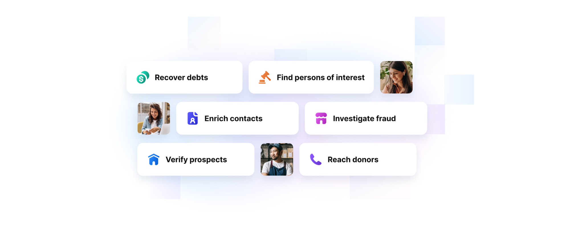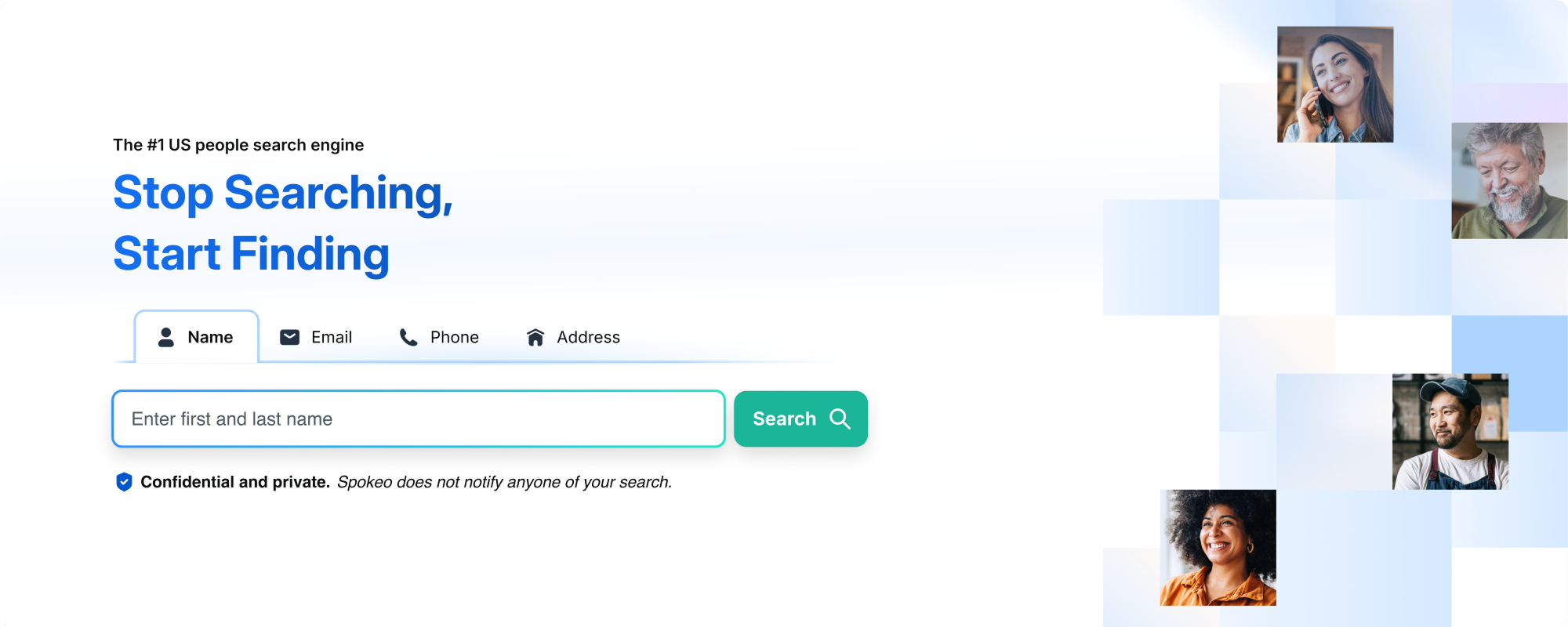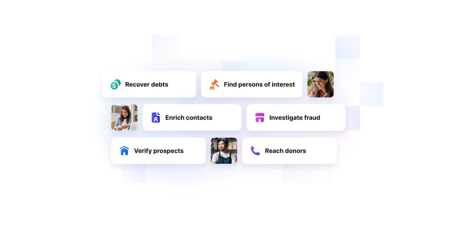 The tile pattern can be stylized and themed using different category colors to best represent different Spokeo product features.