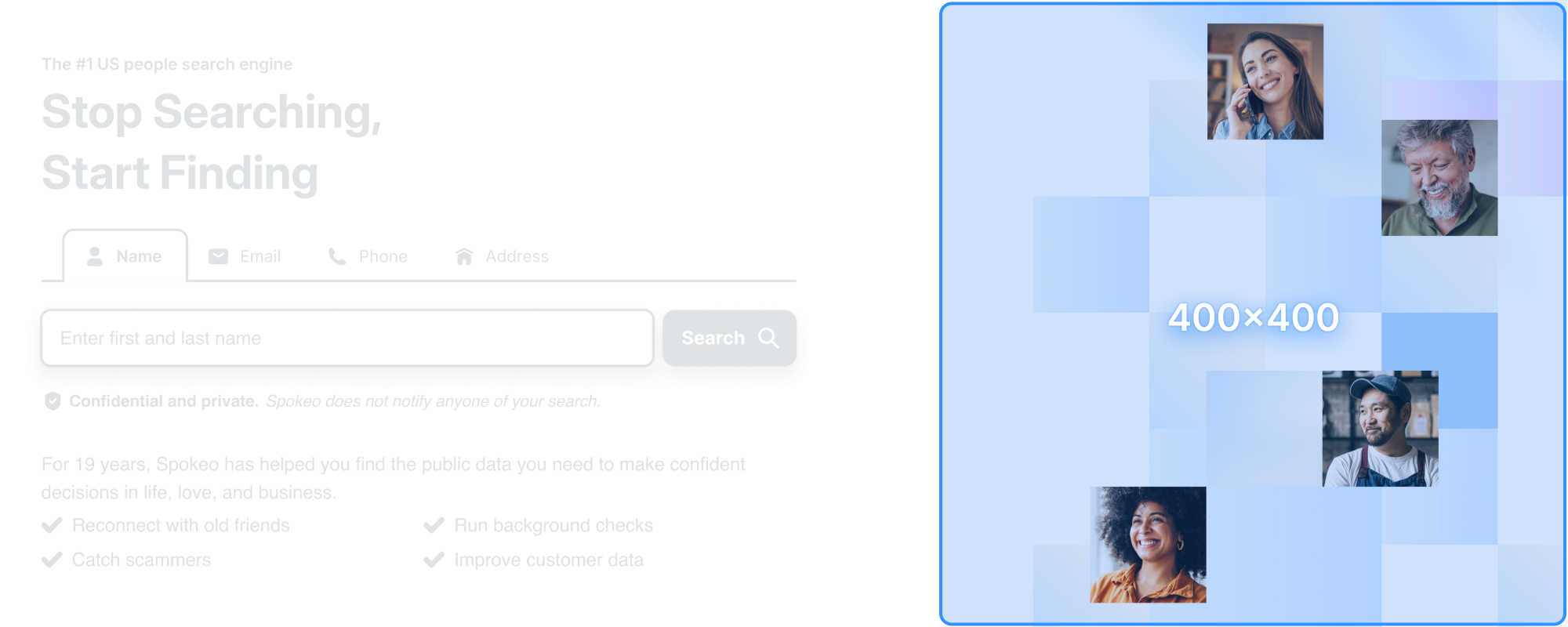 Hero illustrations are displayed on our Spokeo homepage and landing pages. They can have a higher level of detail since there is more real estate for storytelling and adding additional context.